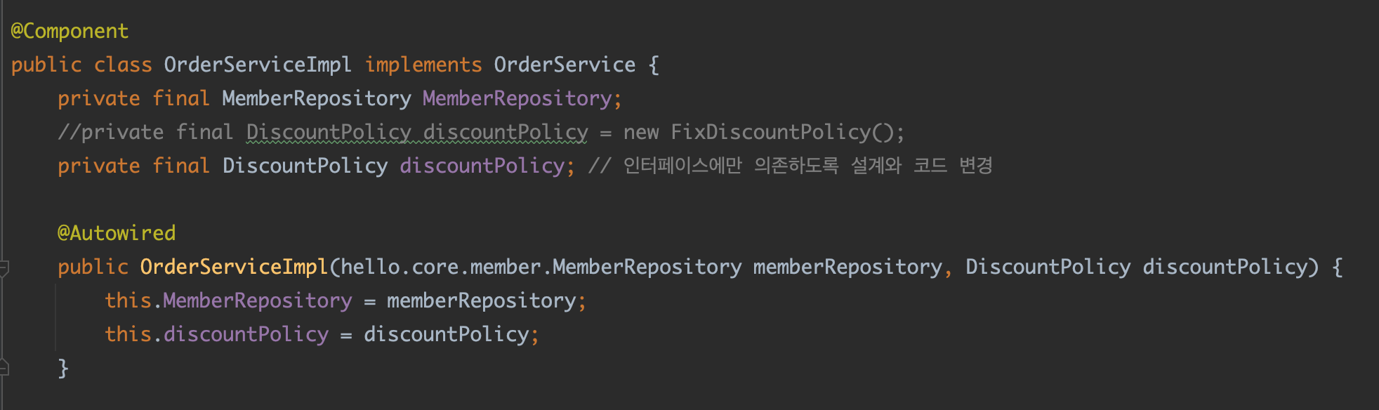 대부분의 의존관계 주입은 한번 일어나면 애플리케이션 종료시점까지 의존관계를 변경할 일이 없다. 오히려 대부분의 의존관계는 애플리케이션 종료 전까지 변하면 안된다.(불변해야 한다.)