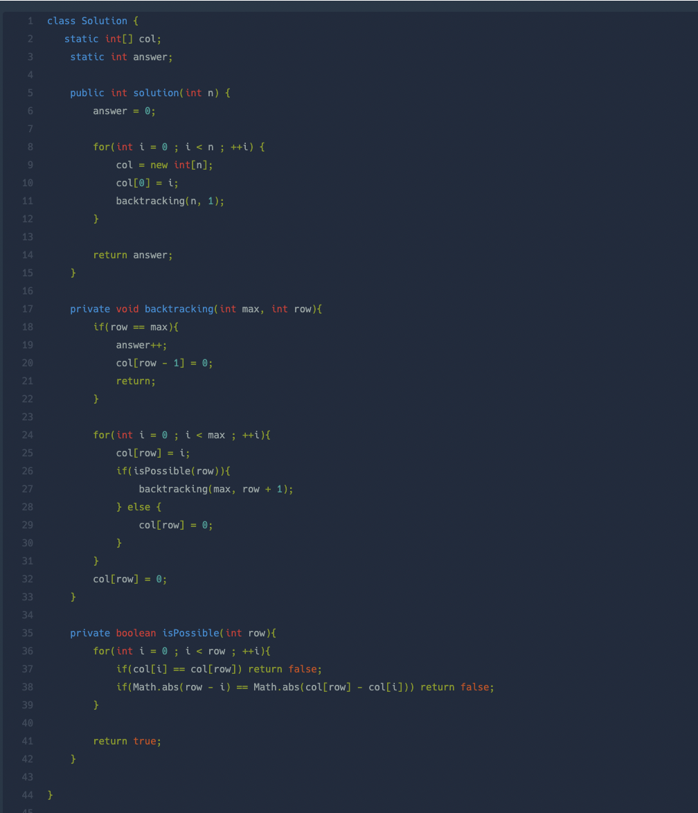[프로그래머스] N-Queen (level.3) / Backtracking/ JAVA